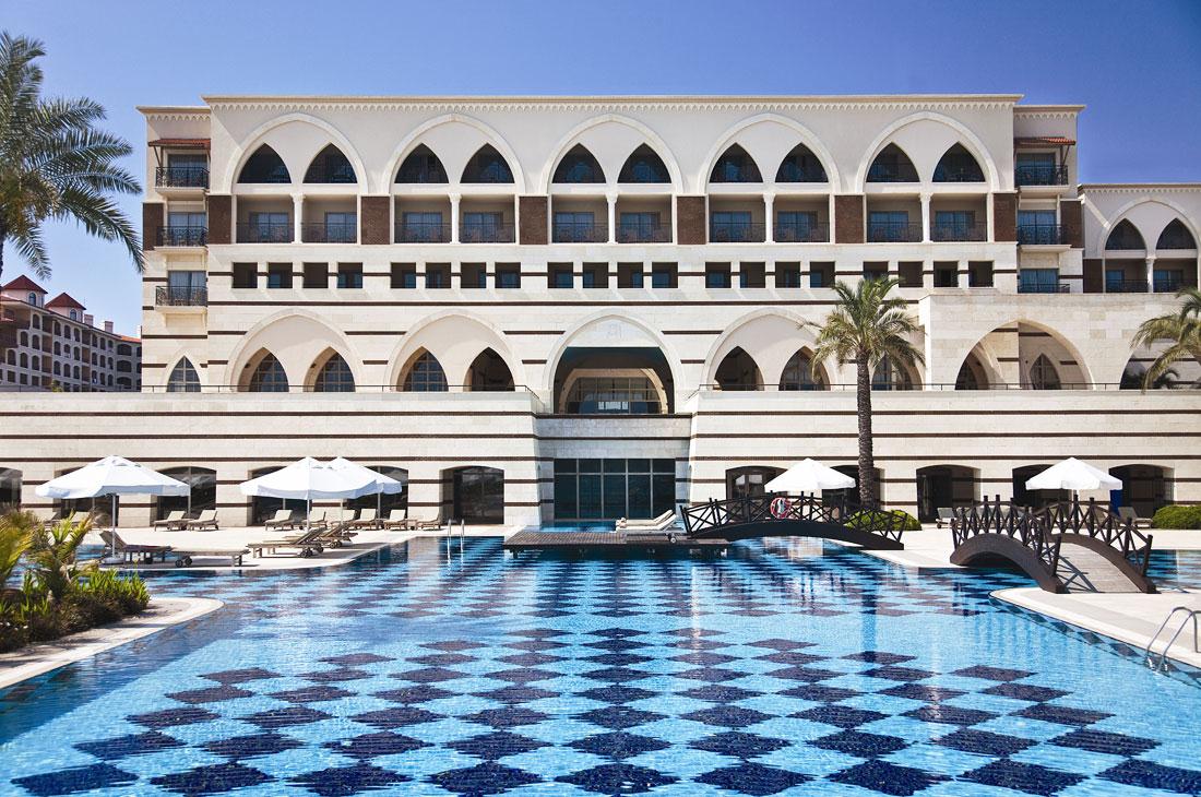 Otel doğrudan sahilde, Antalya Golf Kulübü'nün 18 delikli iki golf sahasının yanında yer almaktadır. Otelin mimarisi Osmanlı öncesi Selçuklu kültüründen esinlenmiştir. Mülk genelindeki tasarım, bu kültürün özgün tasarım özelliklerini ve sembollerini yansıtır. Otelin çeşitli tesislere olan mesafesi şu şekildedir: Antalya Havalimanı 25 km, şehir merkezi (Eski Şehir) 40 km, Kadriye bölgesi 5 km, Belek 10 km.
